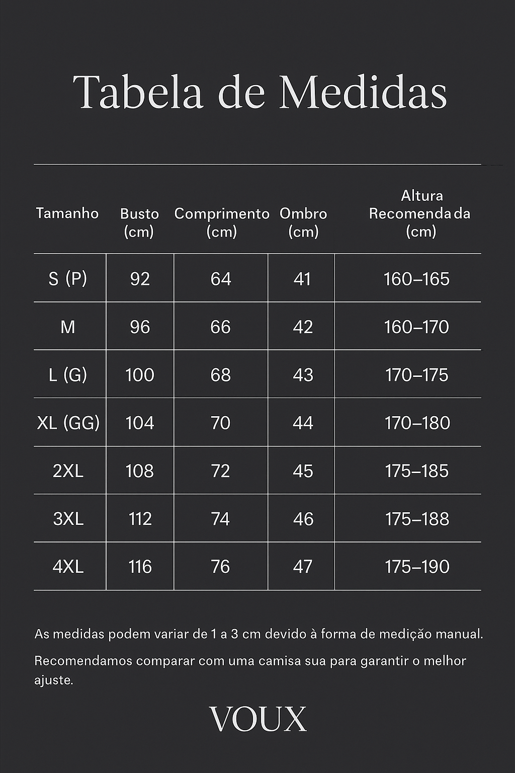 Feita em malha premium de poliéster, a Camisa Polo VOUX combina leveza, caimento perfeito e estilo refinado.